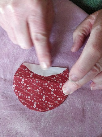 2. Den Kreis in der Mitte falten. Die Hälfte wiederum