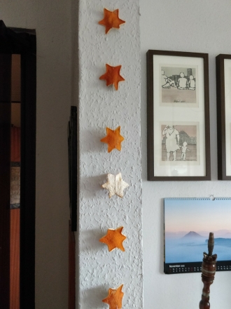 erhalten. Aus den Orangenschalen Formen ausstechen. Das