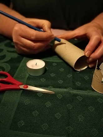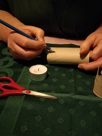 Nach dem Ausschneiden klebt ihr den Karton zu einem Ring