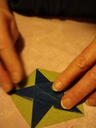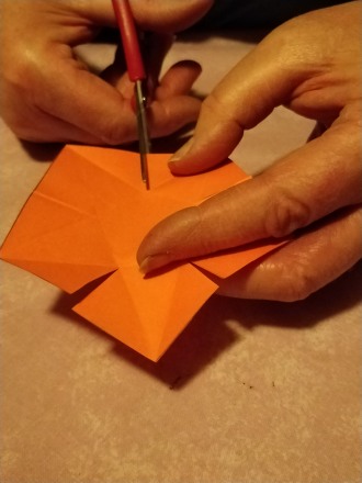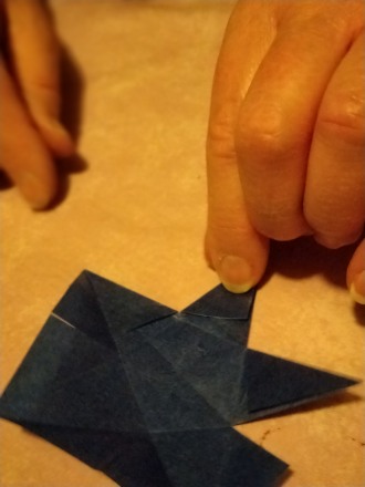 Ein Stück davon falten. Alle 5 Spitzen von Ecke zu