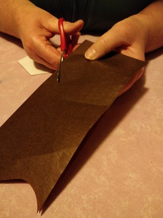 markieren. Von der Mitte bis zur Faltlinie einschneiden.