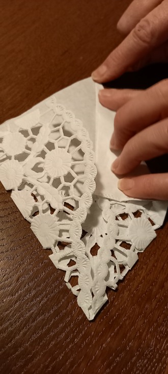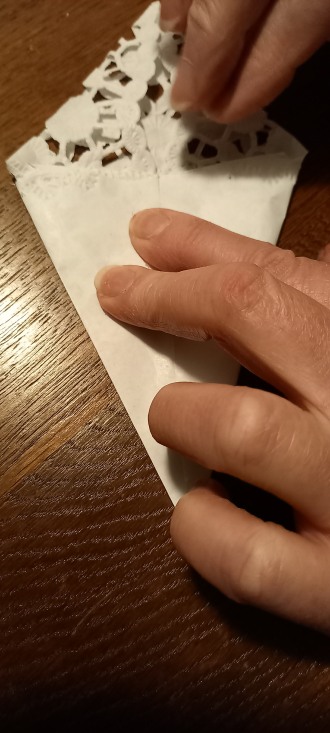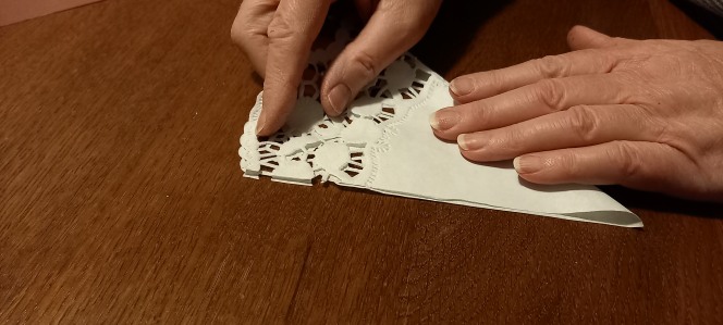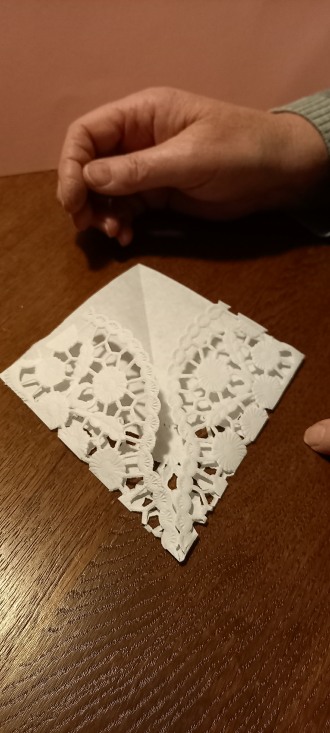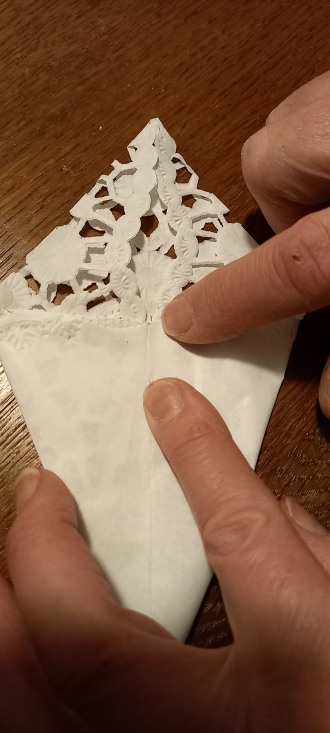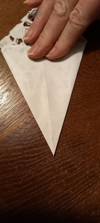 in die Mitte falten. Die Spitze muss an ihrer höchsten