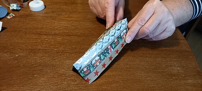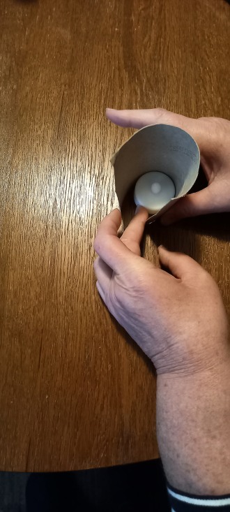 aufschneiden. Das Teelicht muss genau in den Karton passen