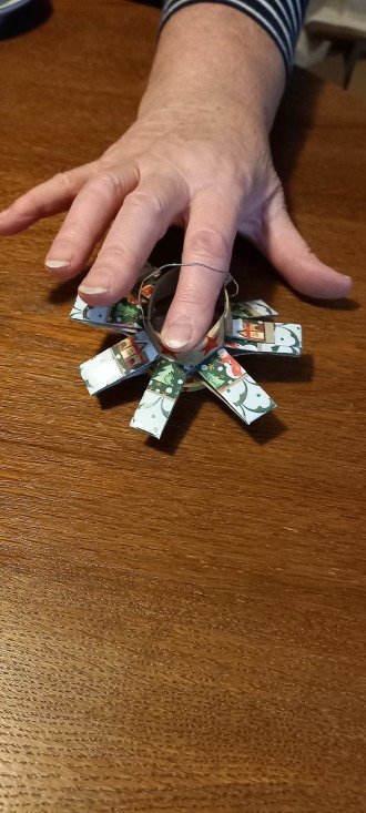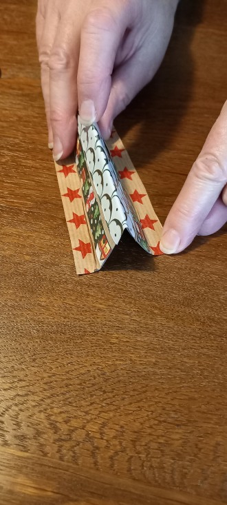 Alles wieder auseinanderfalten und mit bunten Papierstreifen