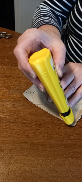 wenn der Klebstoff getrocknet ist. Dann schneidet ihr von