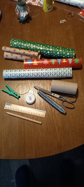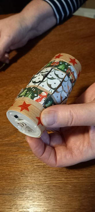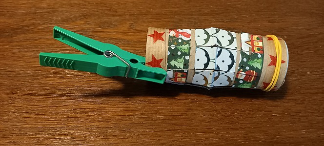 wieder zur Rolle zusammenkleben. Zum trocknen das Gummiband