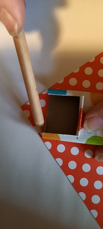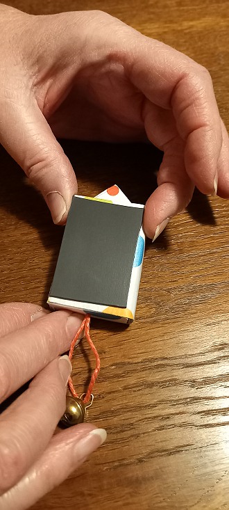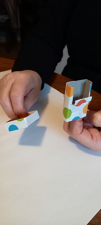 In die Mitte einer Schmalseite des Innenteils ein Loch