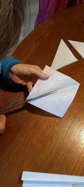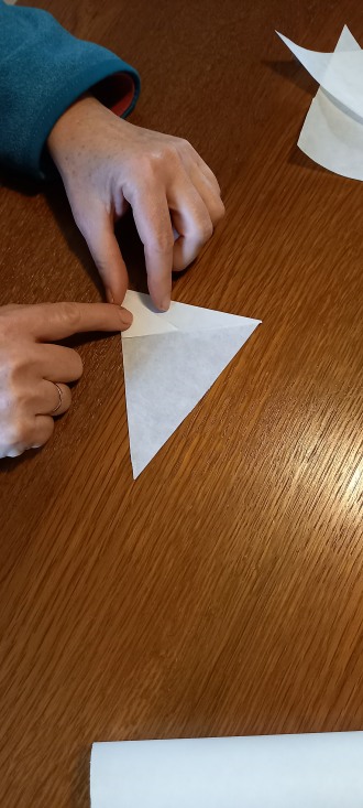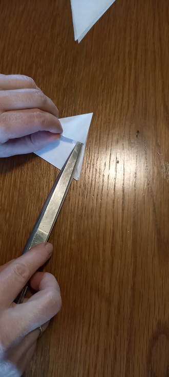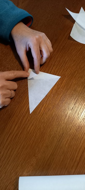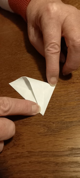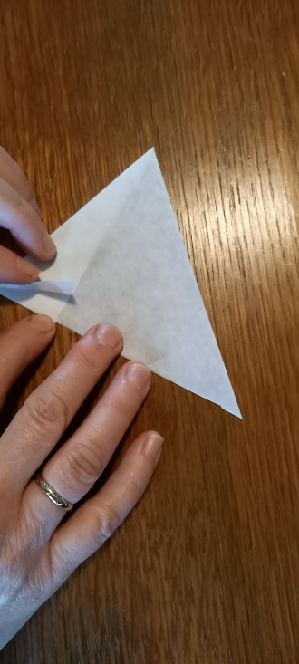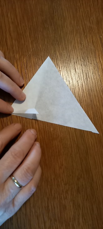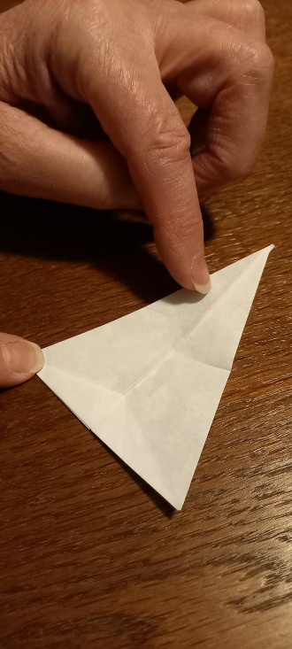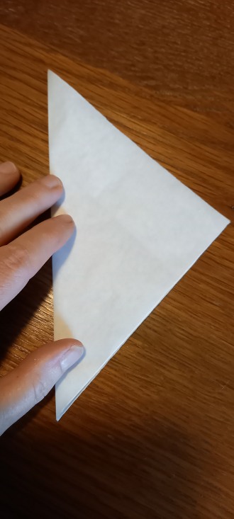gut falten. Das Dreieck wieder öffnen, die lange Seite