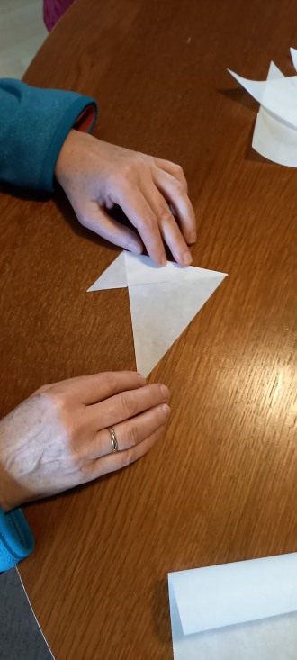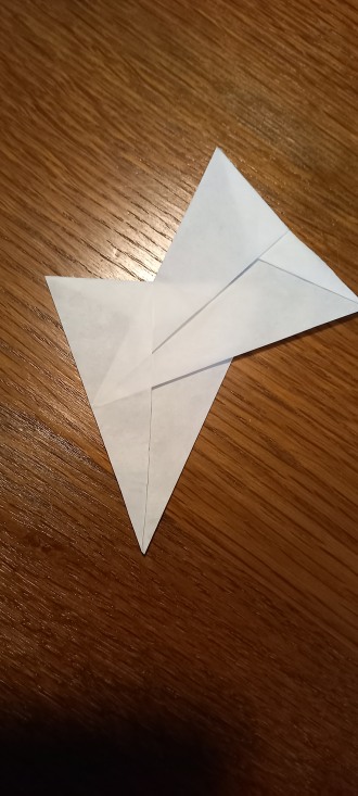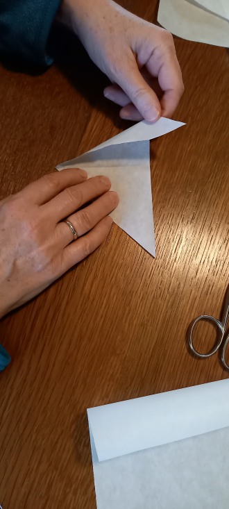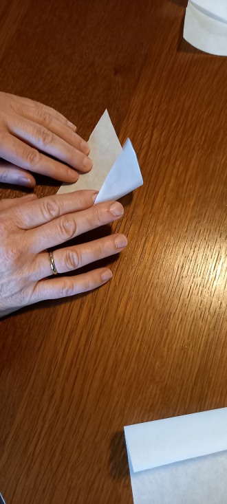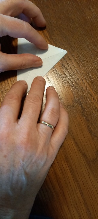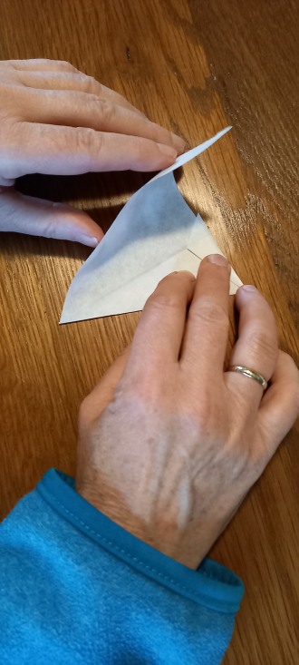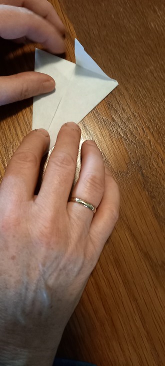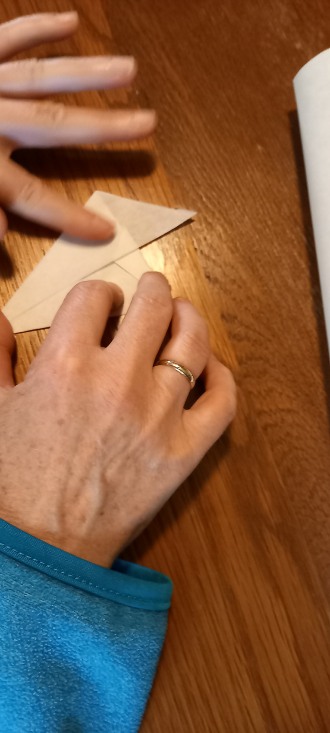 Jetzt die rechte lange Kante an die Mitte anlegen und falten,