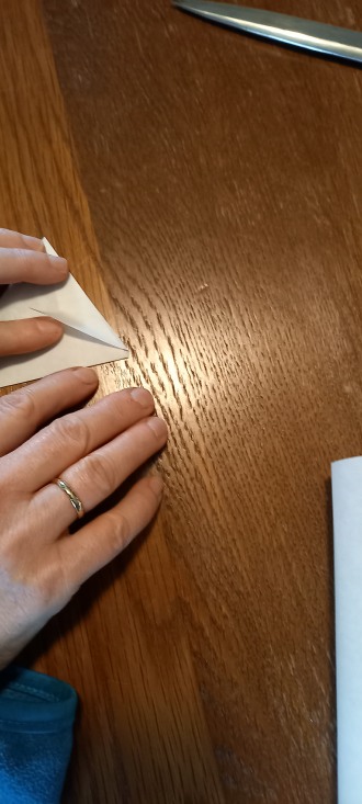 Die lange Seite liegt oben, jetzt die rechte Spitze der