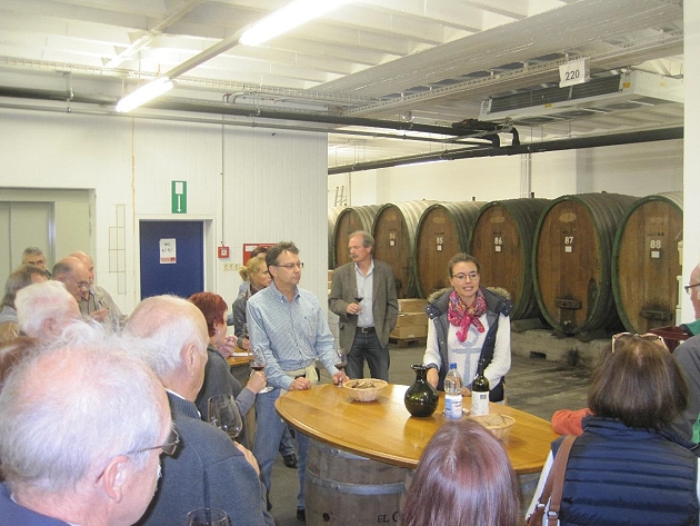 uns die Weine aus der Ferne in den verschiedenen Kellerräumen,